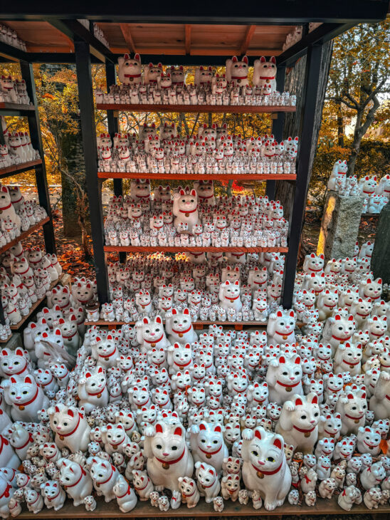 Gotokuji Temple, the Buddhist template of Maneki Neko cat. It’s a charming place, located in Bunkyō, outside of the city center of Tokyo. Unfortunately, most of the cat’s figures were sold out when we were there.