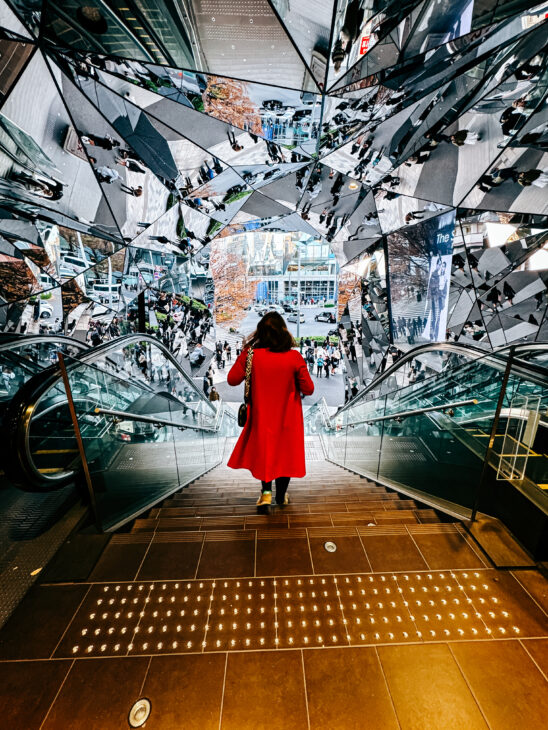 Tokyu Plaza Omotesando Harajuku is a shopping center with a futuristic, very instagramamble entrance. The Omotesando district itself is full of high-end shops with modern and extravagant architecture. For matcha-lovers visit The Match Tokyo.