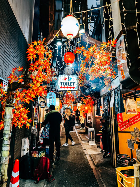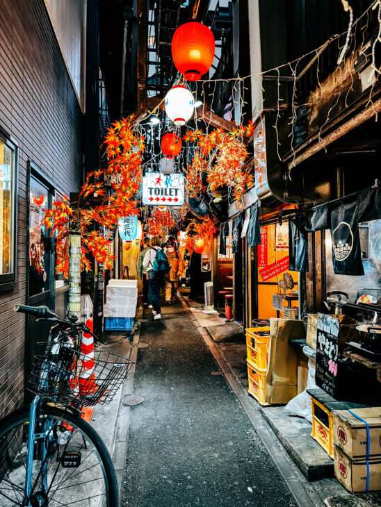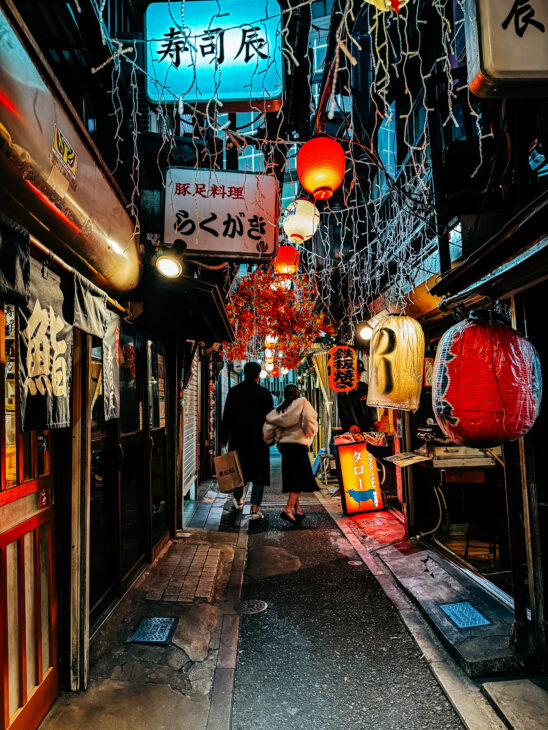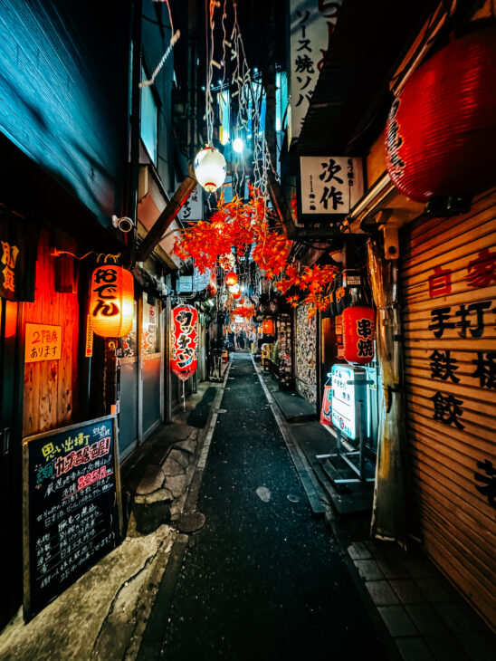 Omoide Yokocho known as Piss Alley, is a street full of izakayas (small restaurants), which started as an illegal drinking quarter in the 1940s. It quickly became known for cheap yakitori and draining pace with locals so small, that there were no restrooms, hence the name. It’s not the case anymore, as places become more touristic. There might be better places to go out and eat, but it makes great places to capture the essence of Tokyo.