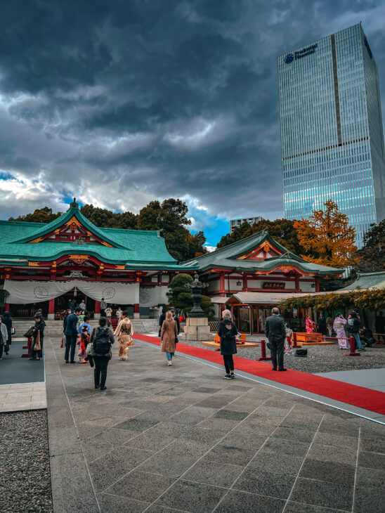 Hie Shrine is one of the main Tokyo shrines, located on the hill, but hidden among sounding skyscrapers between the neighborhoods of Akasaka and Nagatacho. The highlights are the. stairs and 90 Torri gates, which almost transport you to Kyoto.